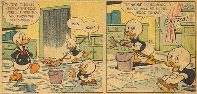 Also, that ending seems to be cribbed from Barks, switching Donald's front step for his car, so even though I to found it funny, I'm not quite sure Perhapsvic Maybelockman is deserving of much praise for it.